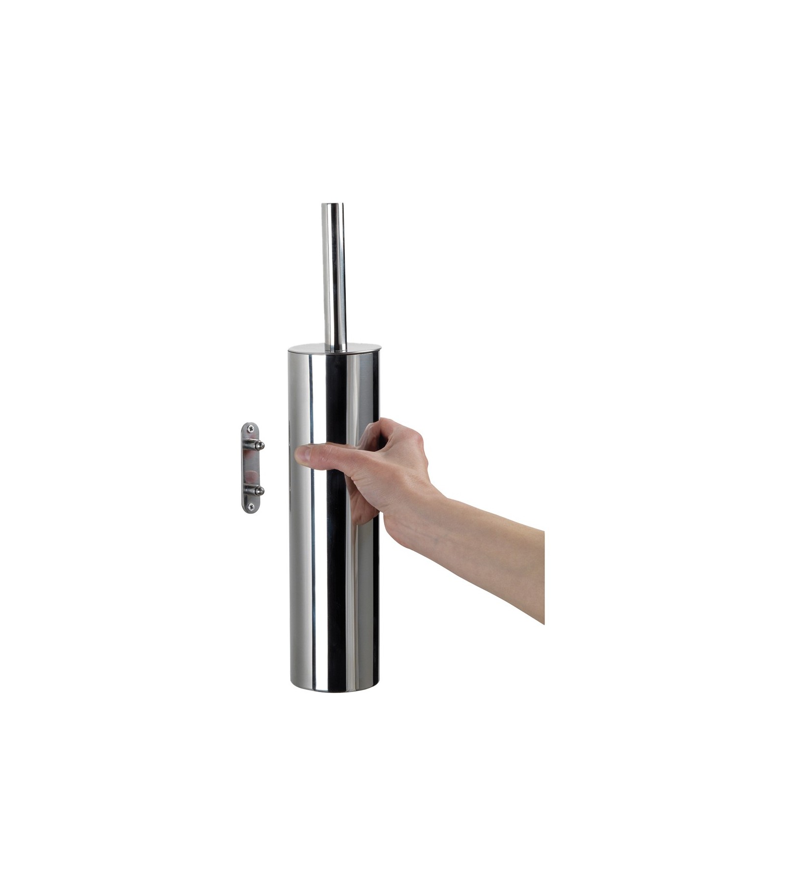 PORTASCOPINO SOSPESO EDERA Acciaio InoxScopino Wc da muro con ciuffo in setole nero e tazza interna estraibile. Misure: 8,5 x 7,7 x 40,3 cm. In Blister trasparenteRif: ED34-03