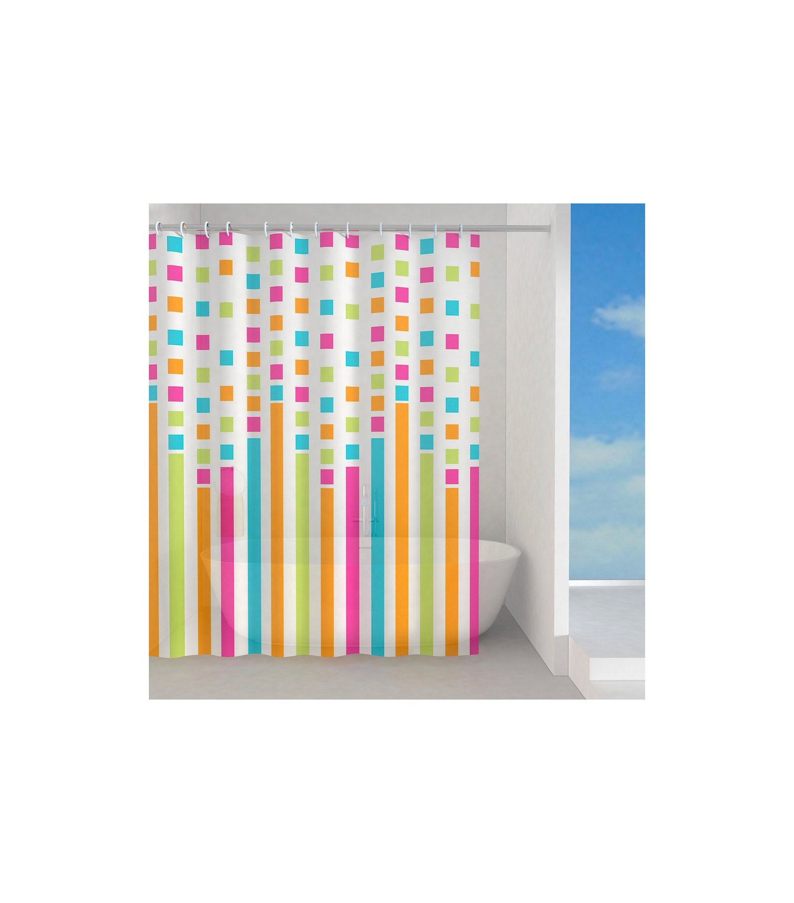 Il PEVA e' un materiale ecologico riciclabile senza dispersione di sostanze tossiche nell'ambiente, completamente inodore, spessore consistente per evitare che la tenda aderisca al corpo durante la doccia. La tenda è fornita completa di anelli.
