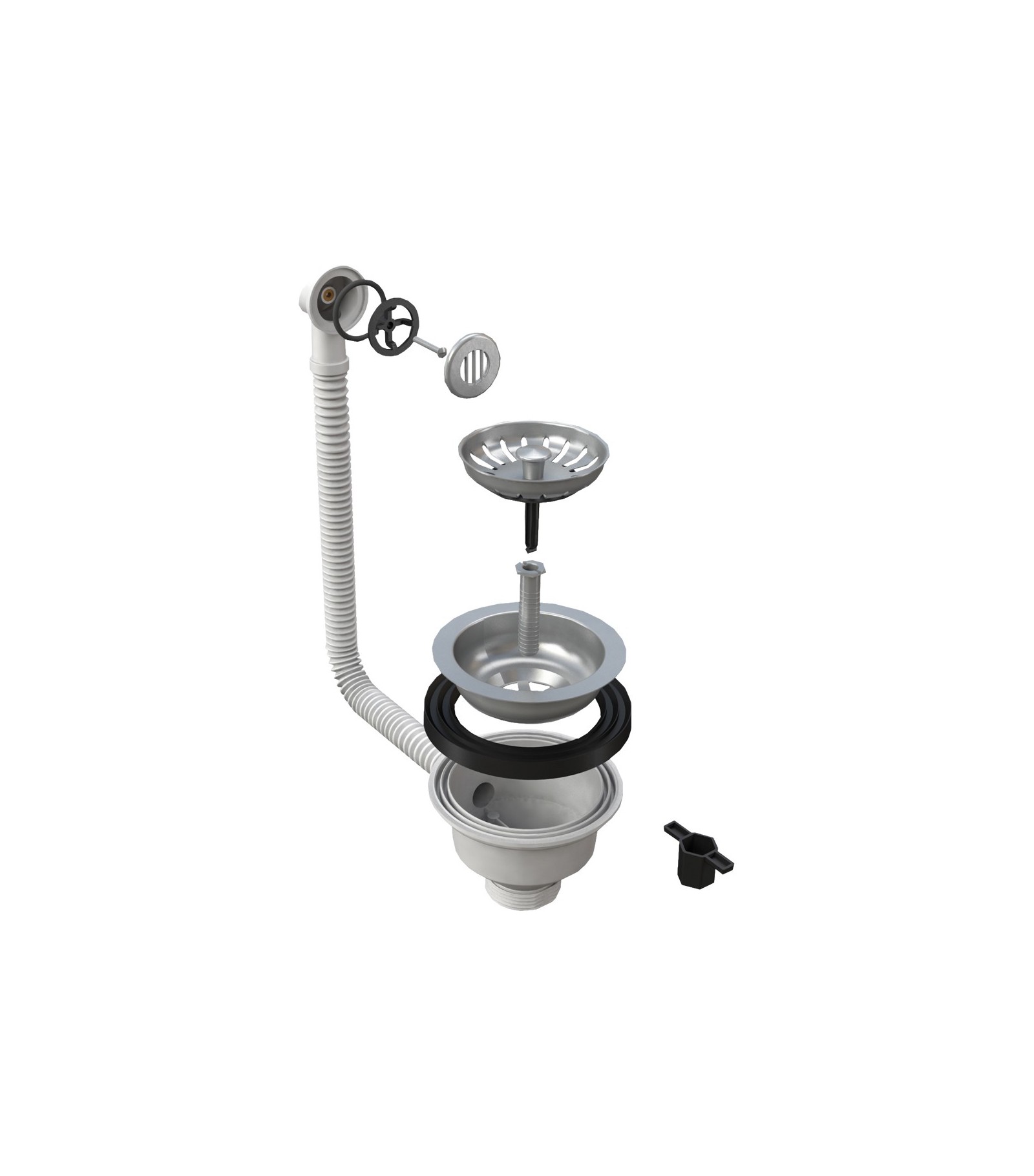 PILETTA HOOKFLEX PER LAVELLO INOX CON TROPPO PIENO A GRIGLIA TONDA 11/2 x D.110 mm