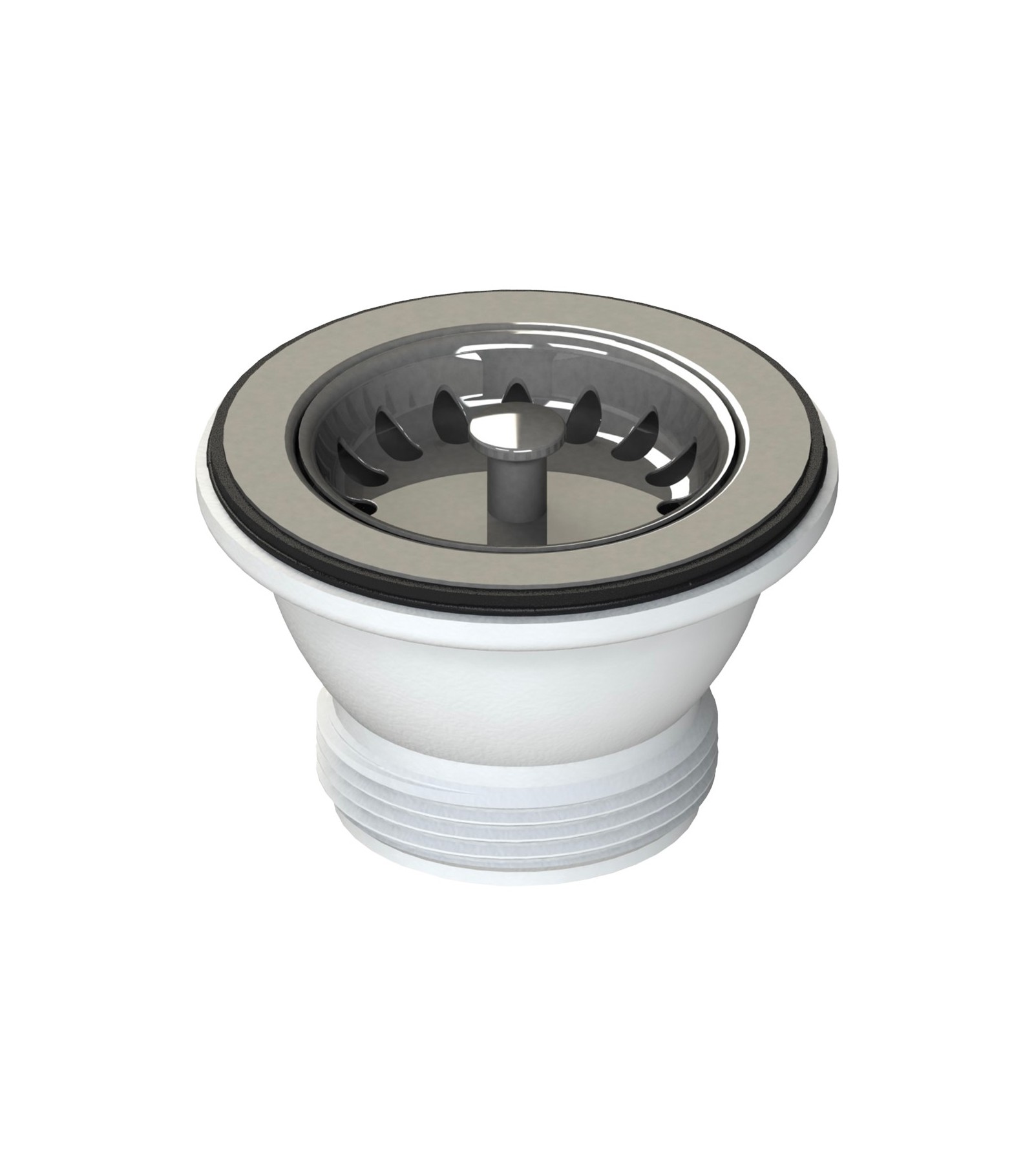 PILETTA CANESTRO PER LAVELLO CUCINA CON FORO D.60 STP 11/2 x D.70 mmAdatta per i tutti i nostri lavelli in Acciaio Inox. Per lavelli con spessore da 0,5 a 20 mm. Materiale: Acciaio INOX AISI 304, PP, PVC e Gomma. Fornita in SacchettoRif: D407