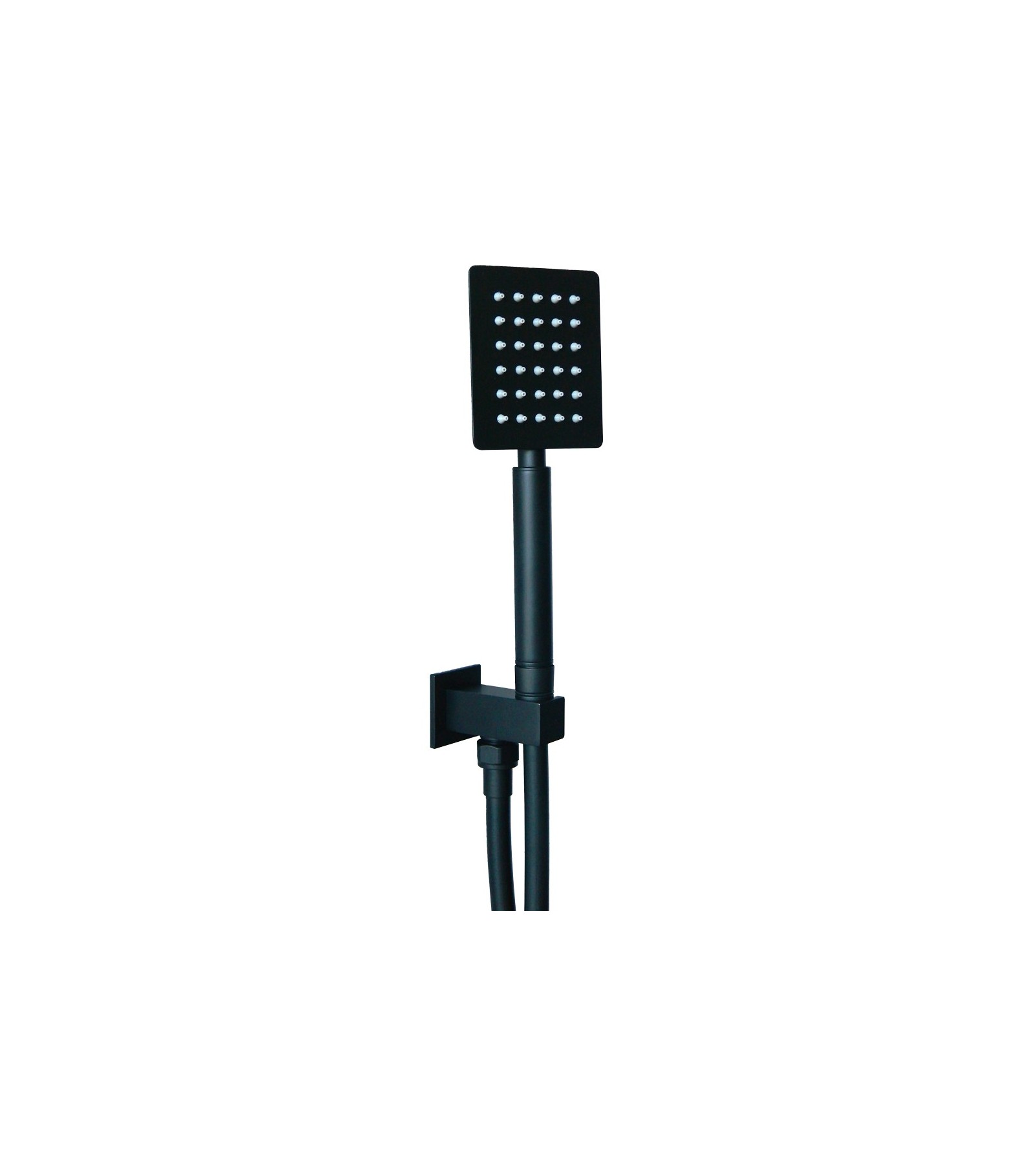 DUPLEX DOCCIA QUADRATO NERO OPACO 1/2 - 100 mmIL KIT COMPRENDE: - Doccetta tonda in Acciaio INOX AISI 304 con ugelli anticalcare, - Presa acqua tonda con supporto in ottone nero opaco, - Flessible doccia antitorsione da 175 cm