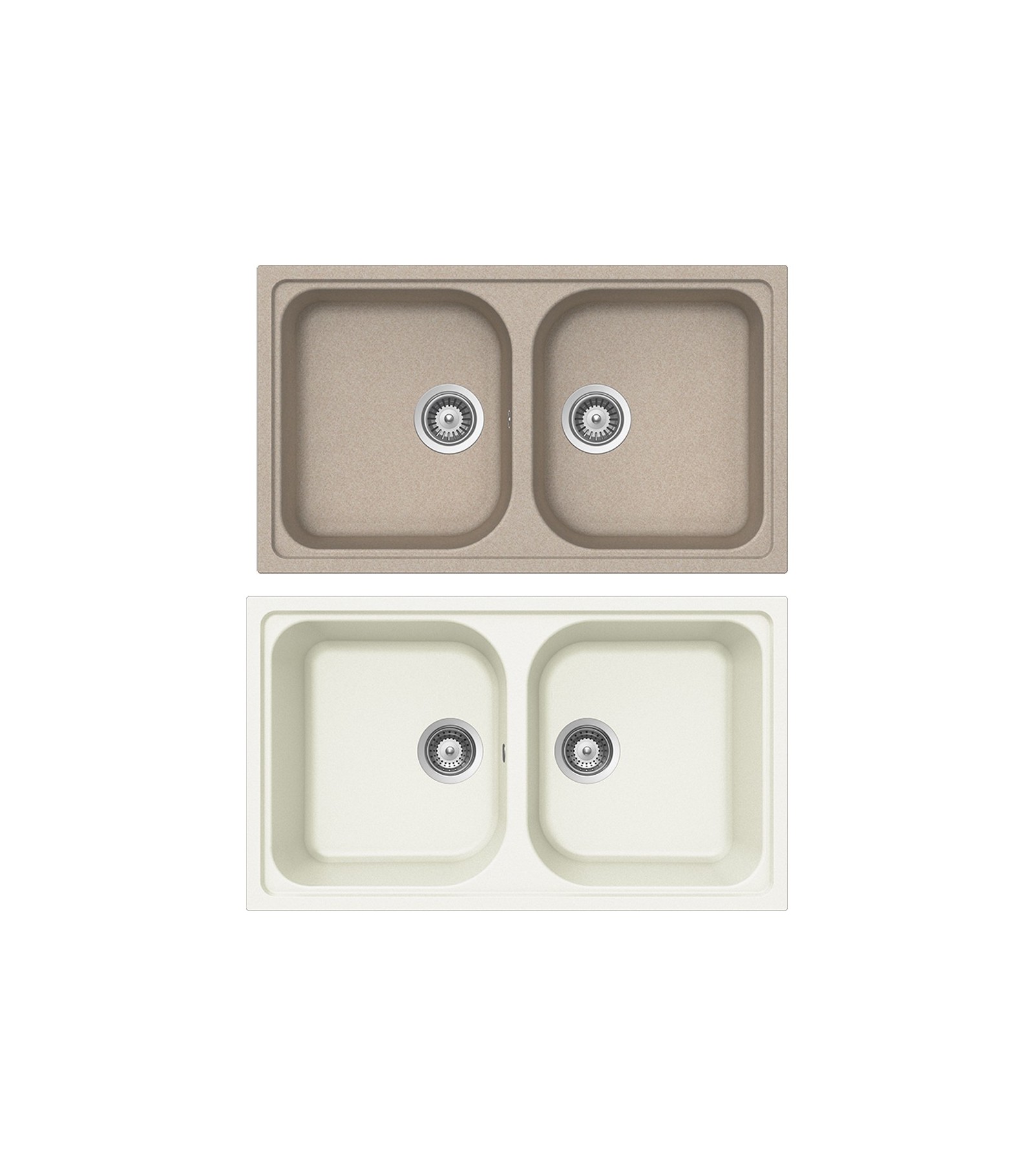 LAVELLO SINTETICO 2 VASCHE INCASSO LITHOS Bianco Alpina 07 - 86x50 cmCompleto di pilette 114 manuale senza guarnizione e sifone con troppo pieno. Foro 90.