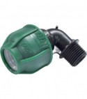 Gomito A Compressione Filetto Maschio Pn10 Mm 20X3/4MIn polipropilene. Anello in resina acetalica e O-Ring. Il sistema brevettato push permette il montaggio del raccordo senza dover smontare la ghiera.