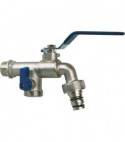 Con attacco al muro filettato maschio da 1/2" e due uscite con valvola di cui una con innesto rapido al portagomma, su filettatura maschio da 3/4", l'altra con filettatura maschio da 3/4".