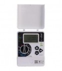 Con programmazione della partenza, durata e frequenza. Funzionamento a batteria 2AAx1,5V (non incluse) e con trasformatore esterno. Schermo LCD. 2 programmi indipendenti con 2 partenze ciascuno. Da Min. 1 a 240 per zona. Visualizzazione prossima irrigazione. Da 4 cicli di irrigazione al giorno ad 1 a settimana. Schedulazione settimanale con selezione individuale del giorno. Funzione antigelo e Water Budget, per una corretta gestione dell'acqua. Predisposizione per sensore pioggia.