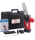 Lama Mm. 200 con capacit di taglio da Mm. 180. Motore brushless Watt 400. Giri minuto: 5200. Con sistema di autolubrificazione della catena. Tempo di carica: ore 2. Tempo di lavoro: ore 1. Blocco catena e velocit regolabile. In dotazione: 1 batteria al Litio Volt 21 Ah 4, caricabatteria da A 4, set di chiavi per manutenzione, lima per catena e oliatore. Peso: Gr. 2100.