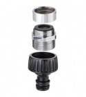 Per collegare un tubo al rubinetto della cucina o del bagno. Per rubinetti con filetto maschio da Mm. 22 o femmina da Mm. 24. Connessione con forcella aggancio/sgancio a pressione. Completa di filtro aeratore rompigetto ed adattatore filettato in metallo. Attacco Quick-Click. Tenuta perfetta.