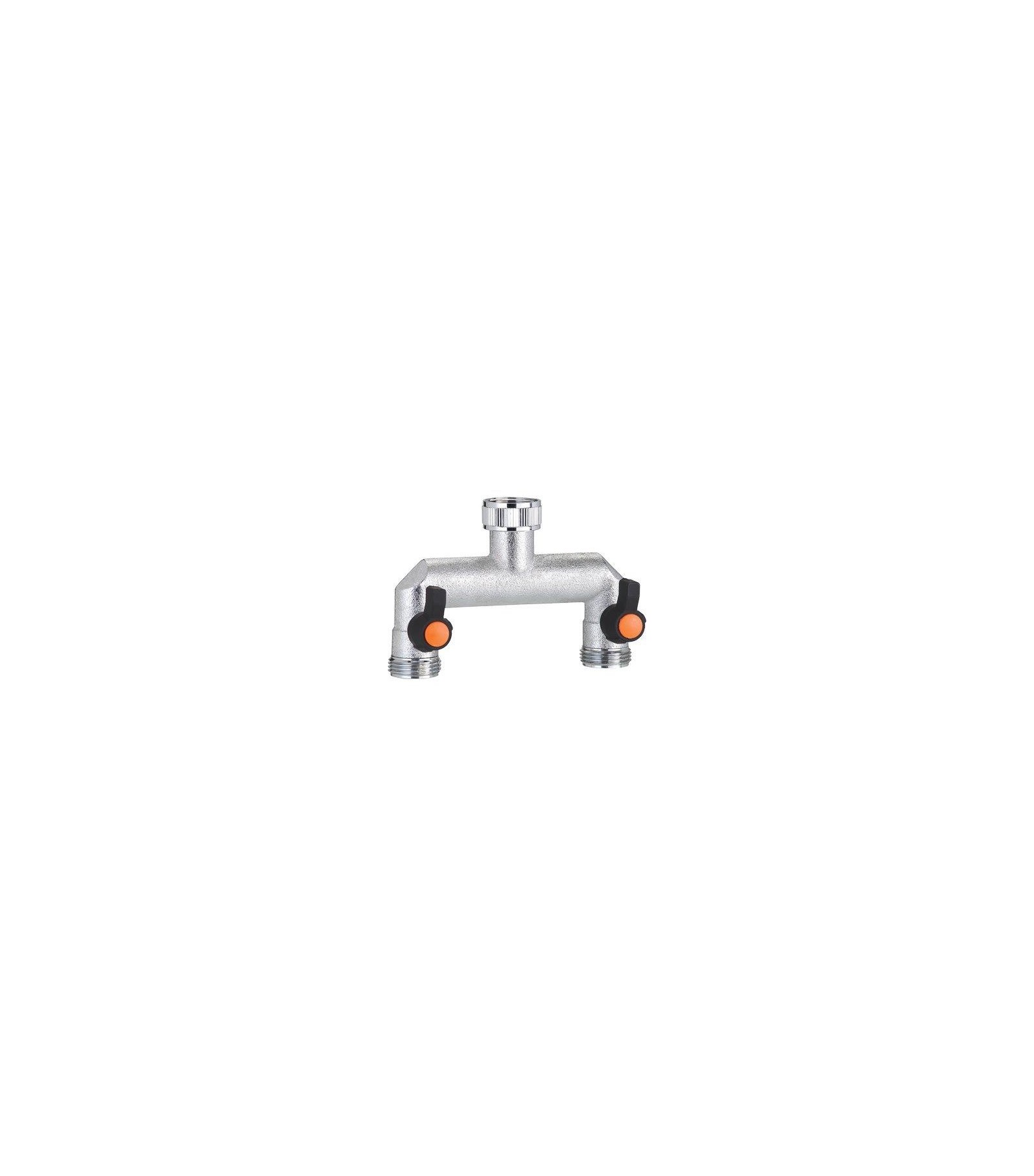 Claber Presa A Rubinetto + 2 Innesti Fil Ottone Claber 3/4F Self 9601In ottone cromato. Presa a due vie regolabili filettate 3/4 . Regolazione indipendente del flusso d acqua sulle due linee. Installazione su rubinetto con filetto da 3/4 .