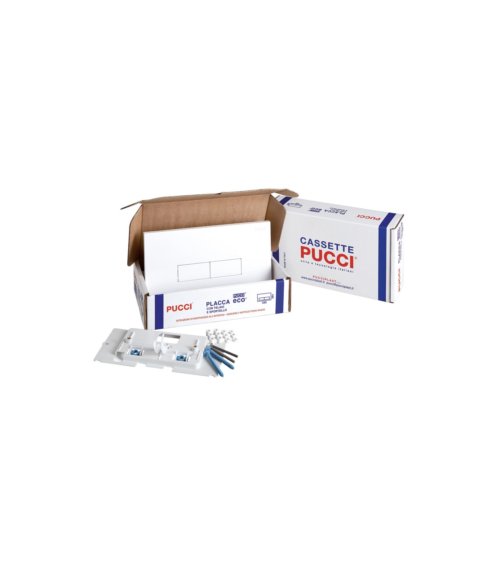 KIT ECO 310 DOPPIO TASTO BiancaCompleto di telaio e sportello. Spessore 12 mm. Ricambio per placche 330 x 180 mm.Rif: 80179560
