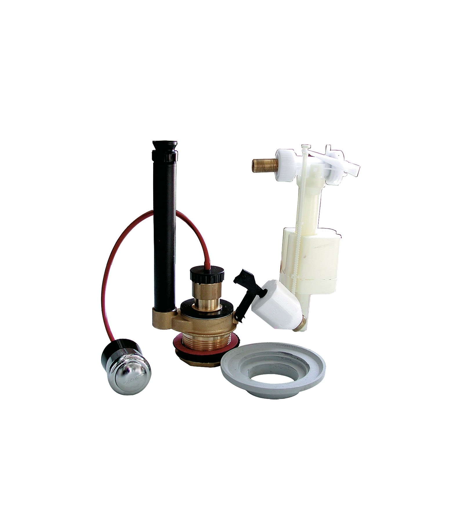 MECCANISMO DI SCARICO CON PULSANTE, KIT MONOBLOCCO E GALLEGGIANTE ASTA LATERALE 3/8 - Ottone