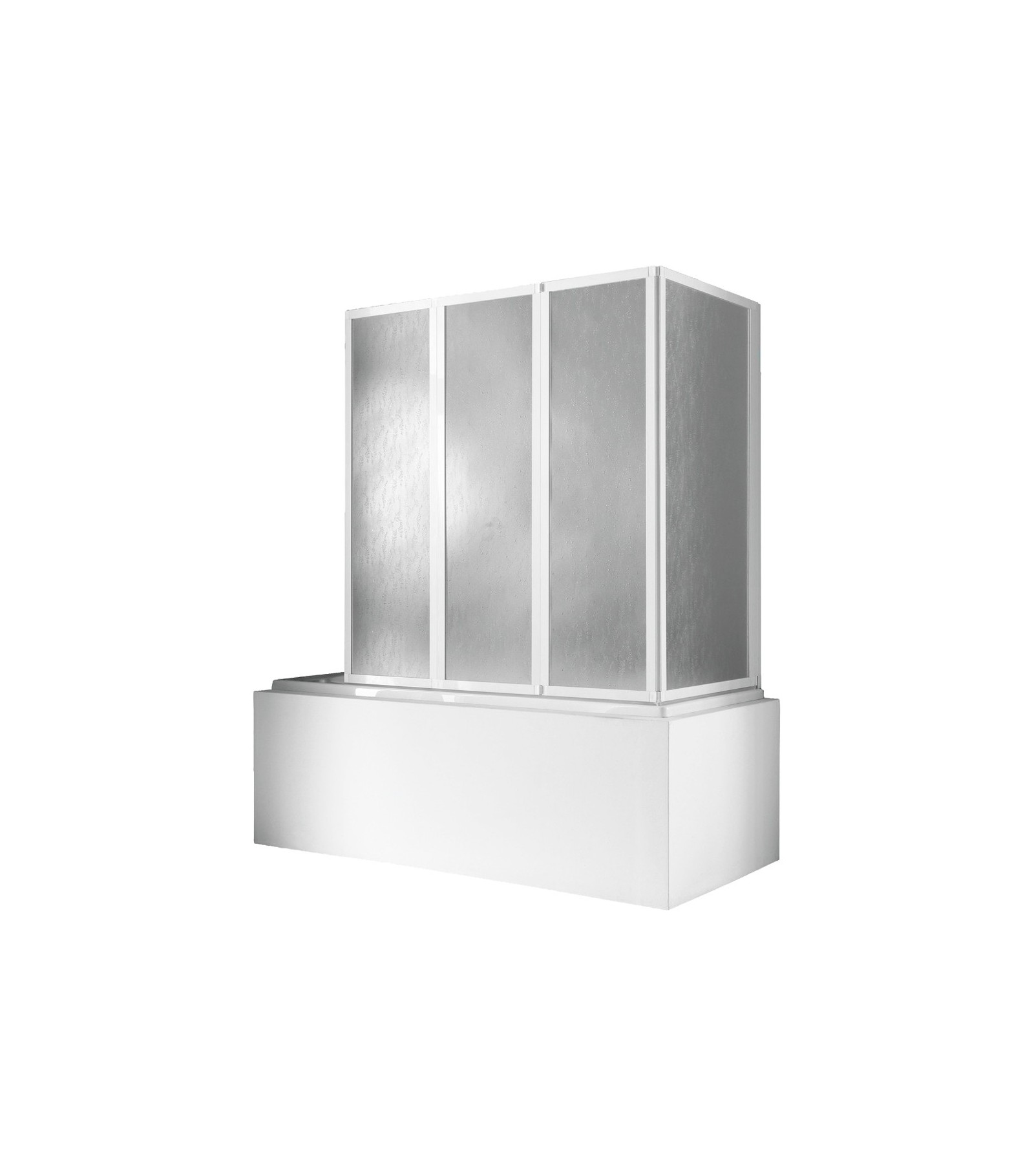 PARETE VASCA GIGLIO BOLLICINE ACRILICO PROFILO BIANCO 3 ante 134 cm - Ch.1 latoBox doccia sopravasca con pannelli pieghevoli. Materiale Vetro: Acrilico. Struttura in alluminio Bianco. Reversibile. Altezza 140 cm.Rif: G 03 BI