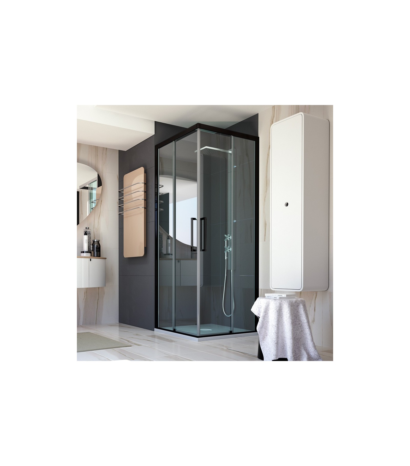 Lato Per Box Doccia Angolare Essence 1 Anta Fissa E 1 Scorrevole Vetro Stampato C 77,5-80 Cm Sx