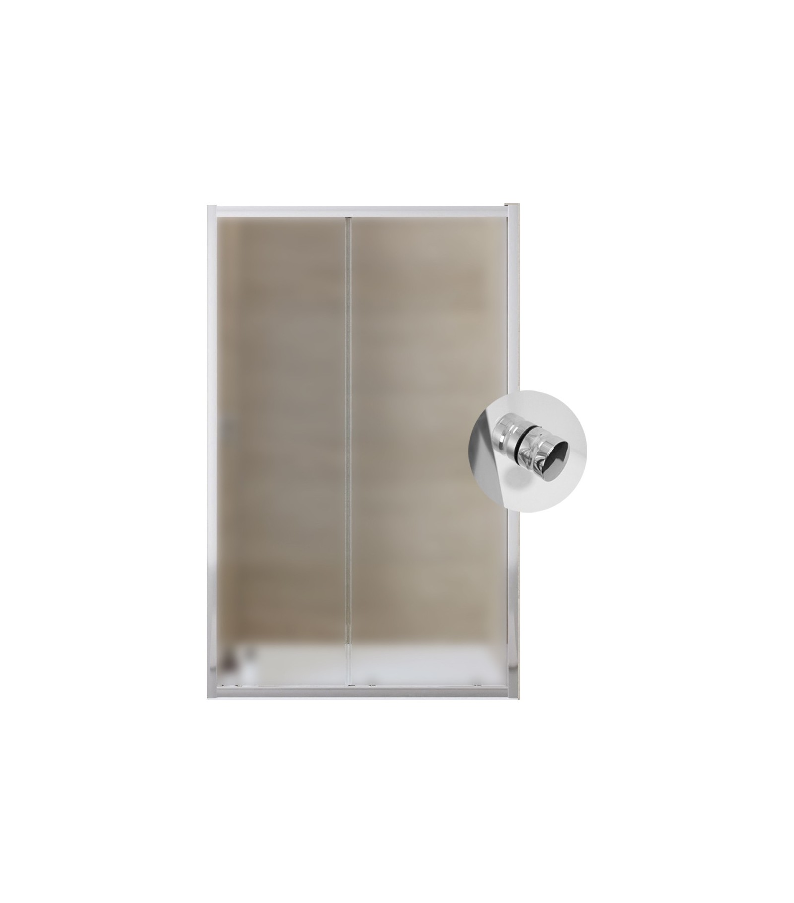 Abbinabile alla parete fissa nostro codice 00492. Reversibile. Con chiusura magnetica. Scorrimento su cuscinetti a doppia ruota. Profilo in alluminio cromato pesante. Finitura cristallo temperato Stampato C da 6 mm.