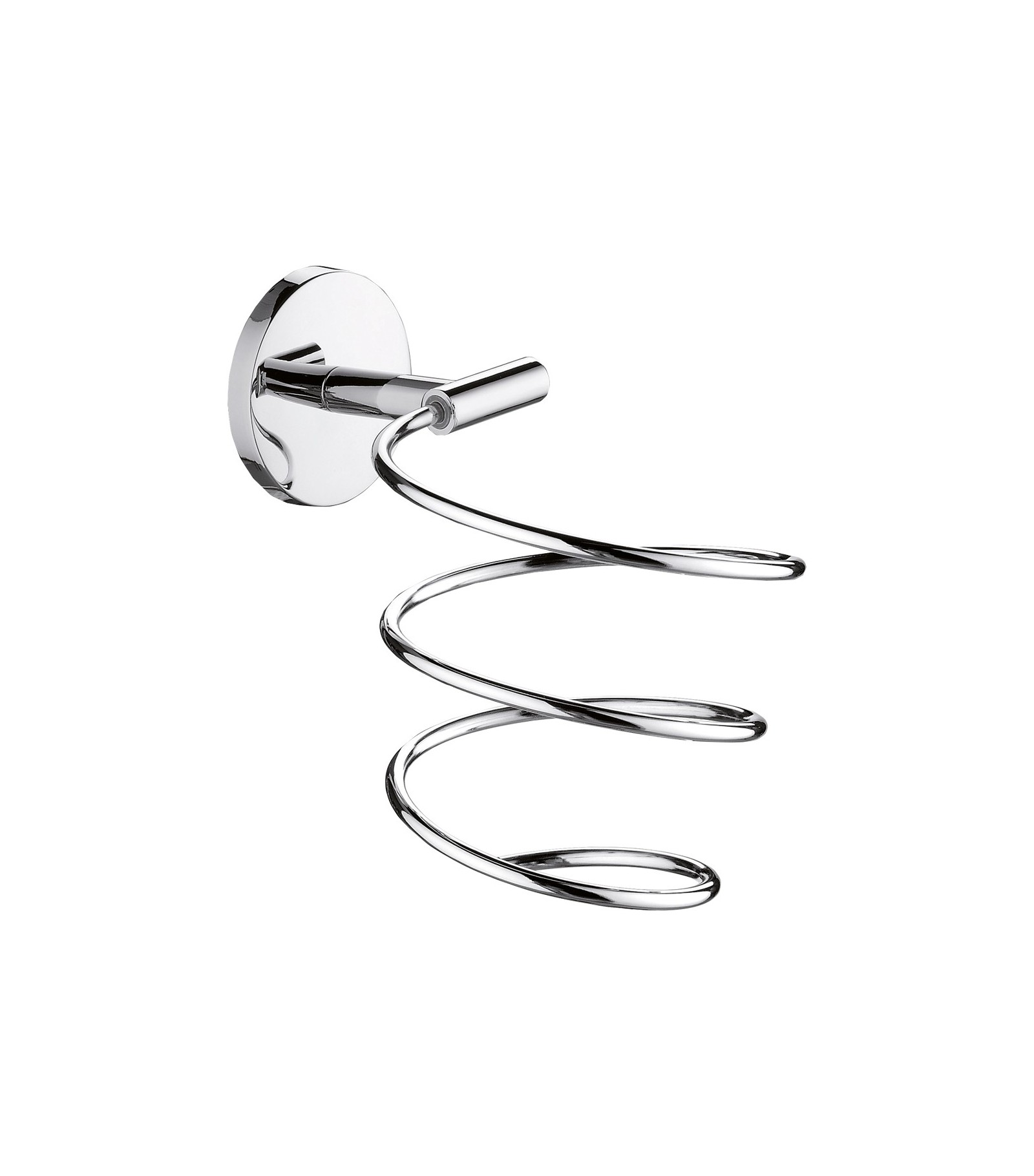 PORTA ASCIUGACAPELLI CON PLACCA TONDA Cromo LucidoMisure: 10,6 x 16 x 17 cm.Rif: 5055