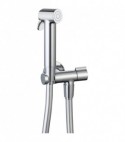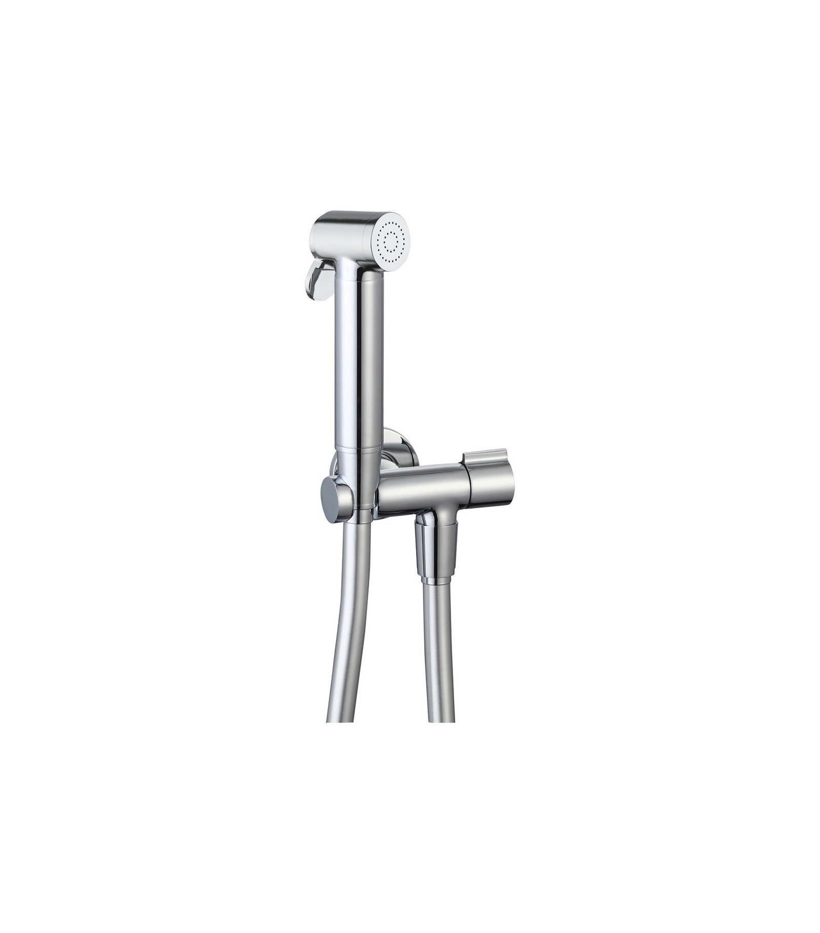 KIT DOCCIA SHUT-OFF SARABY CON VALVOLA IN OTTONE CromoIL KIT COMPRENDE: - Doccetta tonda in ottone cromato con pulsante a rilascio, - Presa acqua tonda salvaspazio con supporto e chiusura in ottone cromato, - Tubo doccia silver tondo da 120 cm.