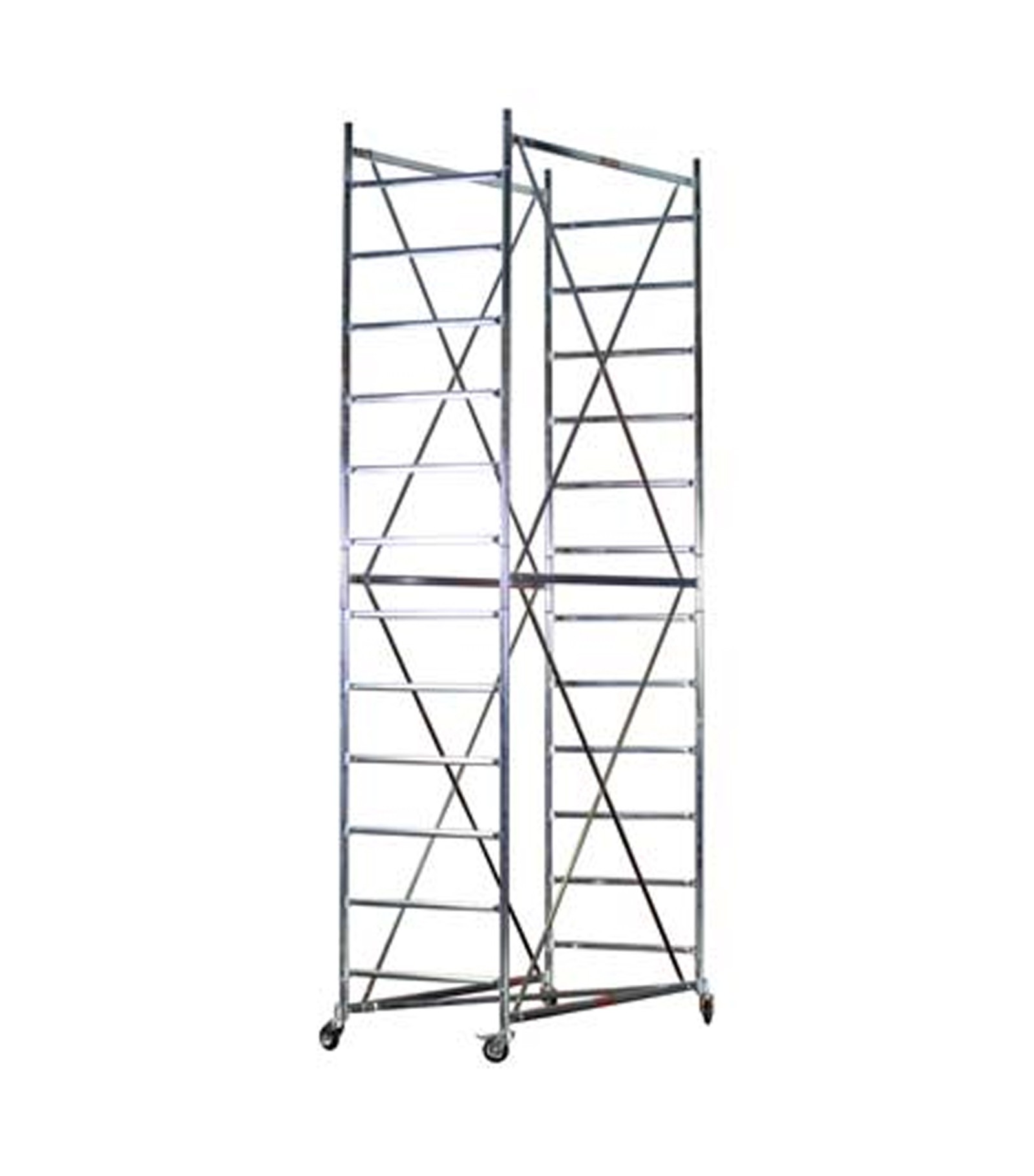 Struttura portante in acciaio zincato, con tubi da Mm. 35 di diametro e 4 ruote pivottanti con freno. Piattaforma di appoggio inclusa. Altezza del piano di lavoro a Mt. 2,7, altezza totale Mt. 3,70. Dimensioni base Cm. 165x75. Si possono aggiungere su richiesta le alzate (Mt. 1,5) fino a un massimo di Mt. 6 ed i relativi stabilizzatori (4 pezzi). Portata massima Kg. 190. Certificazione D.L.GS 81/2008.