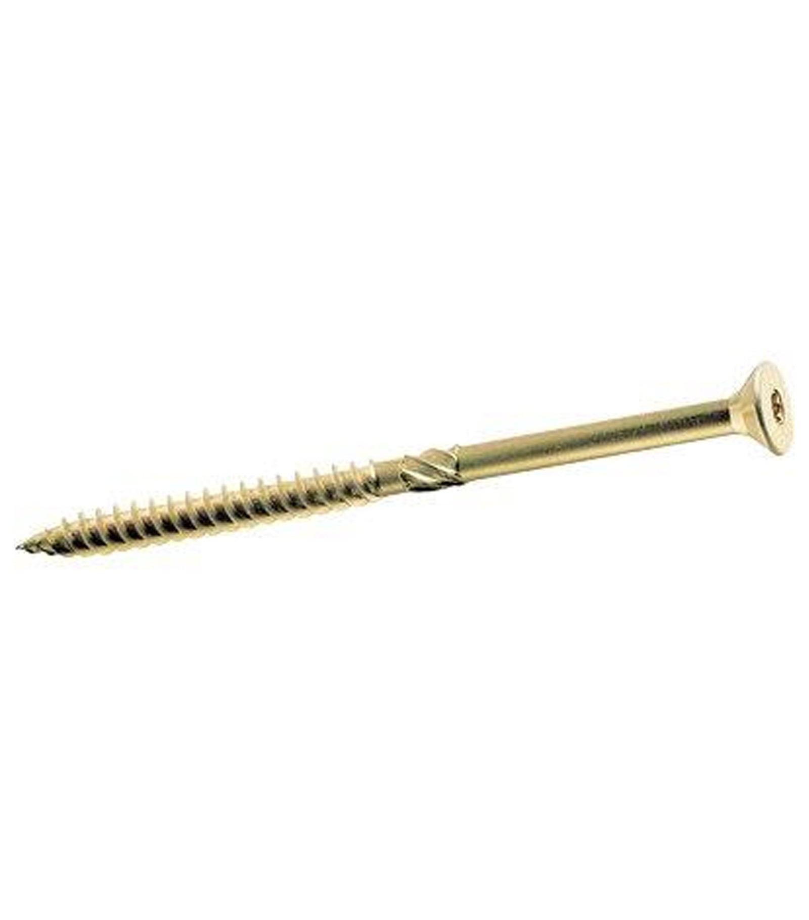 A testa piana svasata, impronta TORX, parzialmente filettata e finitura zincata gialla. Con frese sottotesta, che in avvitamento creano la sede per la testa senza provocare tensioni. Fresa a fine filettatura, per evitare la formazione dell'effetto cono, creando la sede per il gambo. Filettatura a passo largo, per ridurre i tempi di inserimento. Ideale per fissaggi portanti su legno in completa sicurezza.