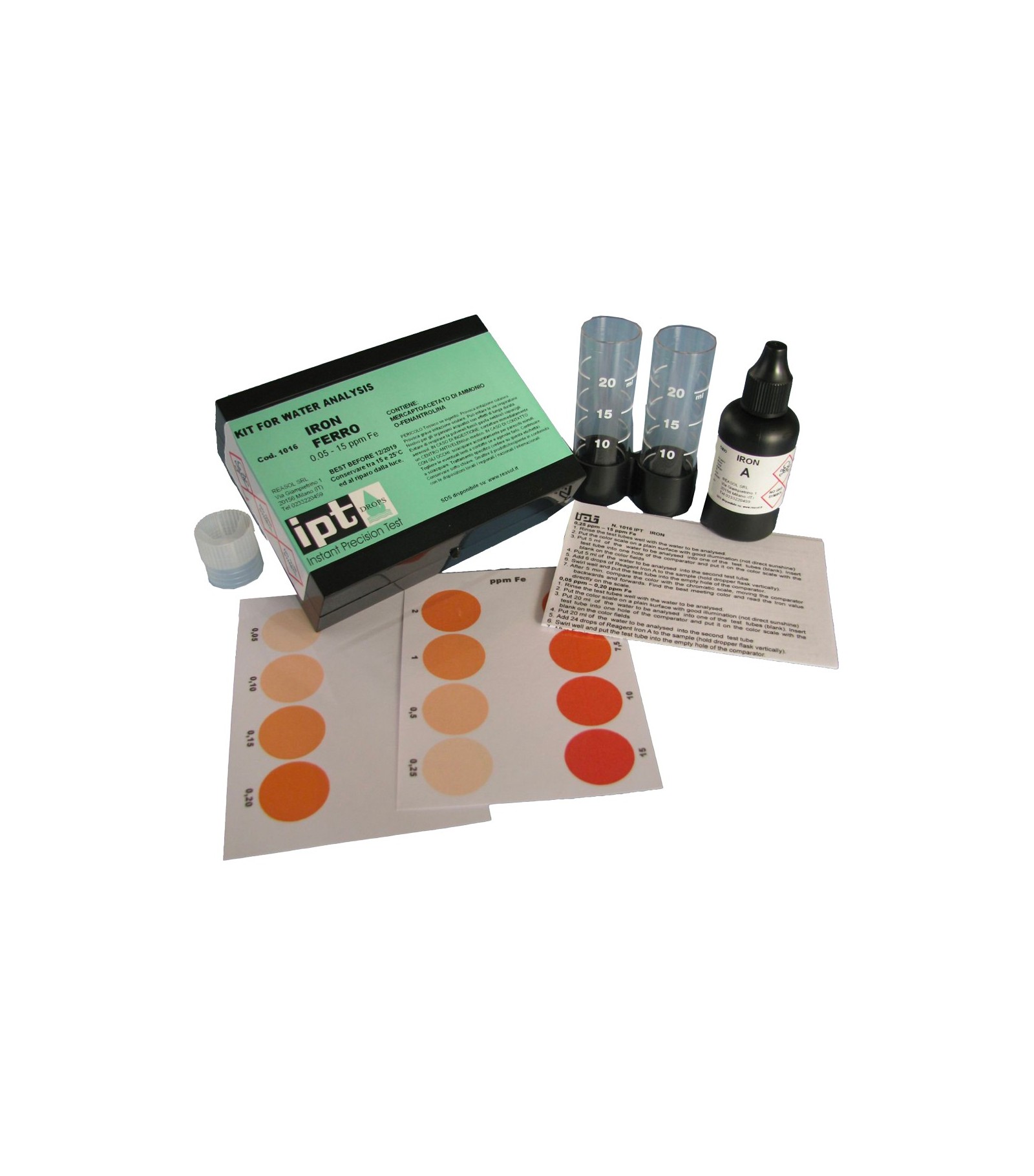 KIT ANALISI PER LA MISURA DEL FERRO DISCIOLTO NELL'ACQUA -Analisi ColorimetricaRif: 471.000.50