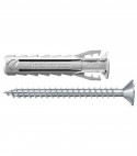 A 4 settori espandenti che garantiscono elevati valori di tenuta in materiali sia solidi che cavi, con bordo. Nuove alette laterali per facilitare il fissaggio. Completo di vite truciolare in acciaio a testa piana svasata e impronta PZ. Ideale su calcestruzzo, mattoni pieni e vuoti, pietra naturale e solette in mattoni.