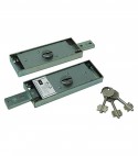 Cifratura KA a coppia. A doppia mappa. Per installazione laterale con catenaccio dritto a 2 mandate. Corsa catenacci Mm. 22. Scatola in acciaio zincato da Mm. 155x56, spessore Mm. 18,5. In dotazione: 2 chiavi.