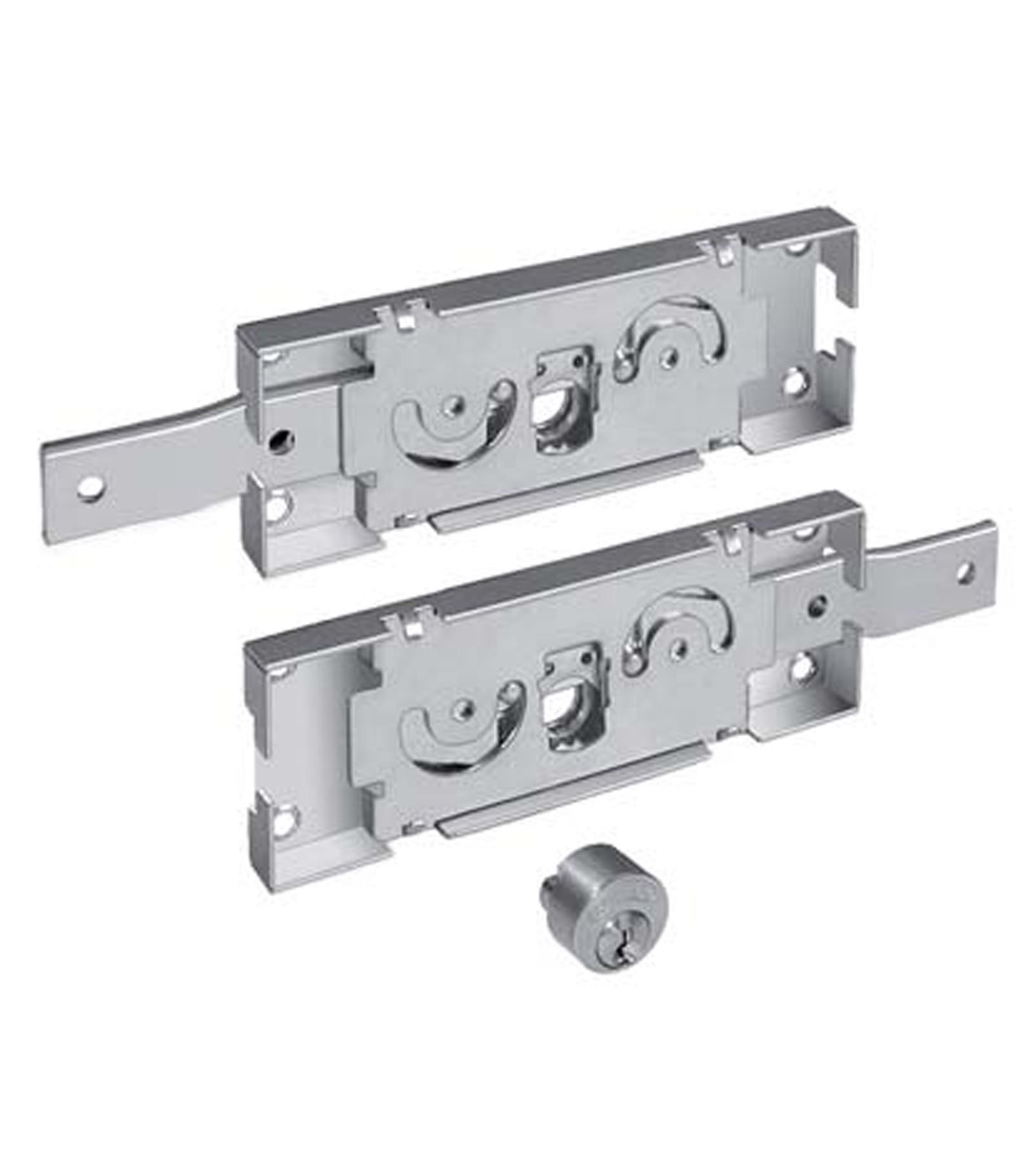 Cifratura KA a coppia. Con cilindro intercambiabile da Mm. 25 di diametro. Per installazione laterale con catenaccio piegato. Funzionamento a ingranaggi, movimentazione con chiave sia dall esterno che dall interno. Corsa catenacci Mm. 24. Scatola in acciaio zincato da Mm. 156x55,4, spessore Mm. 15,5. In dotazione: 3 chiavi piatte.