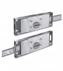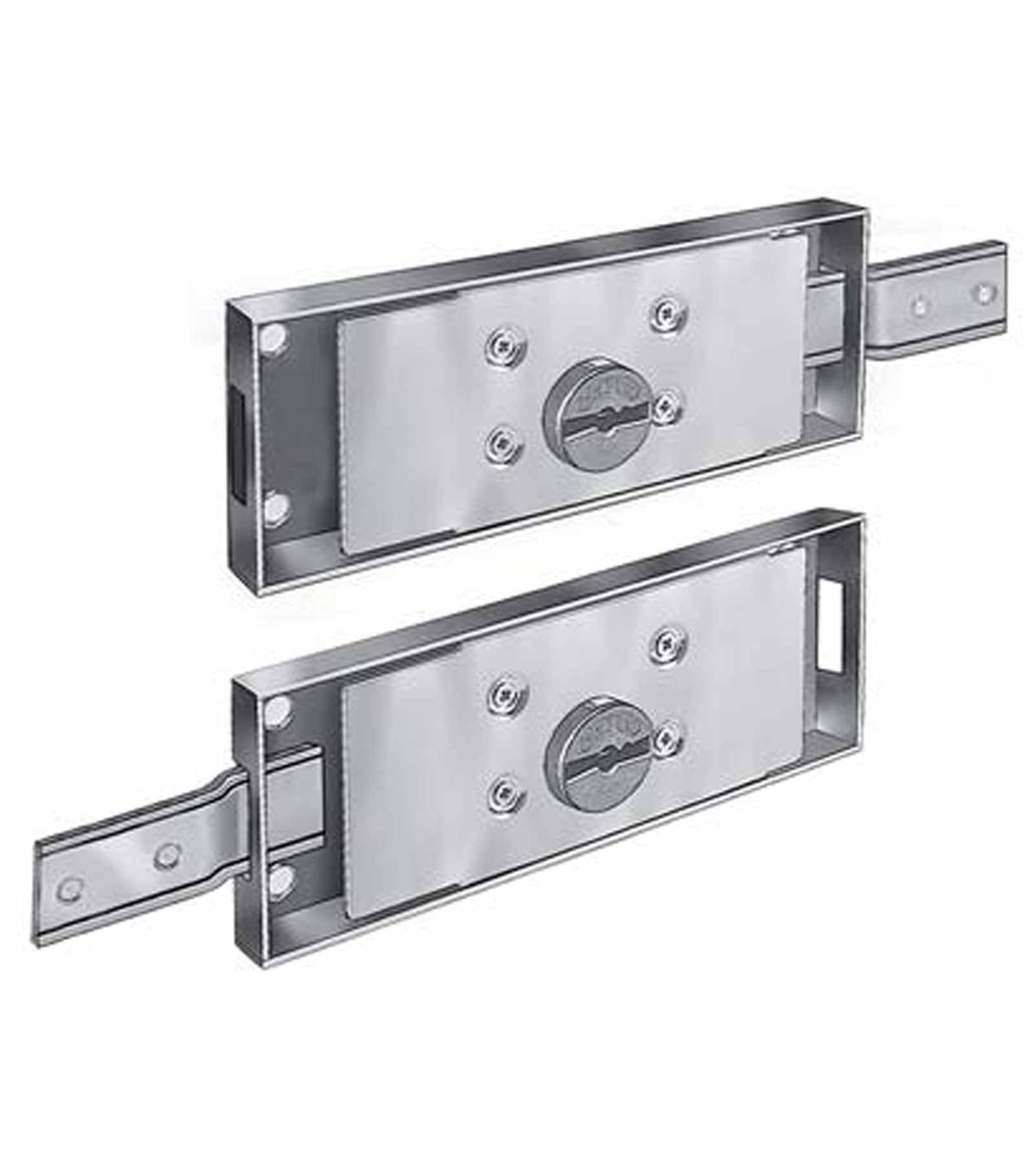 Cifratura KA a coppia. Con cilindro a doppia mappa da Mm. 25 di diametro. Per installazione laterale con catenaccio piegato. Funzionamento a 5 gorges in acciaio zincato, movimentazione con chiave sia dall interno che dall esterno. Corsa catenaccio Mm. 22. Scatola in acciaio zincato da Mm. 160x60, spessore Mm. 16,5. In dotazione: 3 chiavi a doppia mappa.