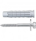 Per fissaggi leggeri, a 6 lati di espansione, che permettono un incremento del 20% dei carichi supportati. Adatto sia su materiali pieni che vuoti. Con collarino dinamico che permette sia la posa a filo parete, sia il montaggio passante. Completo di vite per legno in acciaio al carbonio zincocromato con testa esagonale e rondella.