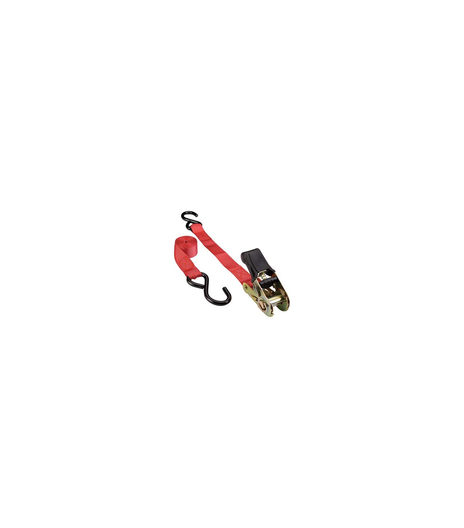 Sistema di ancoraggio a cricchetto, nastro in poliestere ad alta tenacit . Con 2 ganci. Lunghezza Mt. 5, larghezza Mm. 25. Capacit massima Kg. 350. Rispondente alla normativa EN 12195-2.