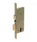 Per cilindro sagomato. Scrocco reversibile elettrificato 12V. Chiusura con catenaccio a 2 mandate. Frontale con bordo quadro da Mm. 22x264. Altezza scatola Mm. 183. In dotazione: 1 incontro, coppia contatti e viti di fissaggio.