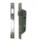 Per cilindro sagomato. Scrocco reversibile. Chiusura con catenaccio a 2 mandate. Quadro maniglia Mm. 8. Frontale con bordo quadro da Mm. 22x238. Altezza scatola Mm. 170. In dotazione: 1 contropiastra in acciaio con aletta.