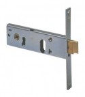 Per cilindro ovale. Scrocco reversibile con catenaccio incorporato. Quadro maniglia Mm. 8. Frontale in acciaio zincato con bordo quadro da Mm. 16x160. Altezza scatola Mm. 44. In dotazione: viti di fissaggio per cilindro.