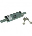 A doppia mappa. Per installazione centrale con catenacci dritti a 2 mandate. Corsa catenacci Mm. 22. Scatola in acciaio zincato da Mm. 155x56, spessore Mm. 18,5. In dotazione: 2 chiavi KA.