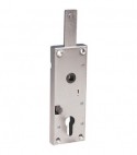 Verticale con chiusura singola lato superiore a 1 mandata. Corsa catenaccio Mm. 25. Quadro maniglia Mm. 8. Interasse Mm. 70. Scatola in acciaio zincato da Mm. 155x56, spessore Mm. 15.