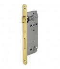 Scrocco bombato reversibile, con richiamo quadro maniglia Mm. 8. Chiusura con catenaccio a 1 mandata. Frontale da Mm. 22x238. Altezza scatola Mm. 170. In dotazione: 1 chiave patent.