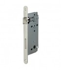 Scrocco bombato reversibile, con richiamo maniglia quadro Mm. 8. Chiusura con catenaccio a 1 mandata, azionabile da quadro maniglia Mm. 6. Frontale da Mm. 22x238. Altezza scatola Mm. 170.