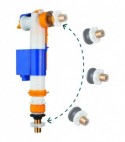 Versione Universale (laterale/inferiore). Apertura ritardata, permette di risparmiare 0,5 Lt. d'acqua ad ogni scarico. Dimensione ridotte. Regolazione telescopica (versione inferiore). Silenzioso. Filtro antimpurità. Sistema di chiusura contro pressione. Pressione dinamica: 0,1-10 bar. Pressione statica: 16 bar. GARANZIA 10 ANNI
