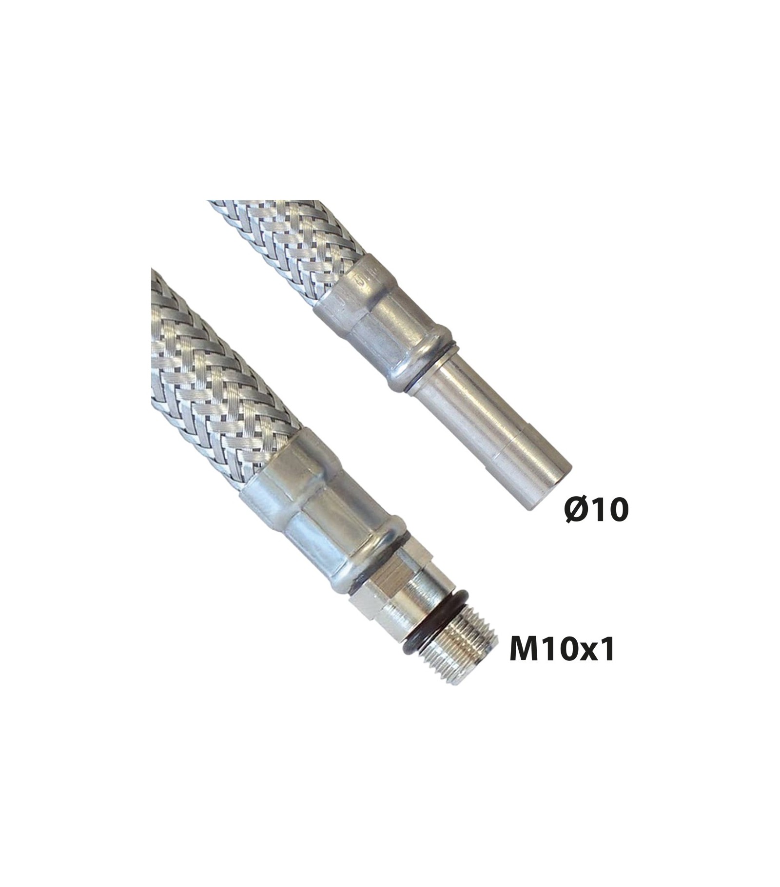FLESSIBILE IN ACCIAIO INOX M10x1 CON TRONCHETTO D.10 CORTO 35 cm - DN8