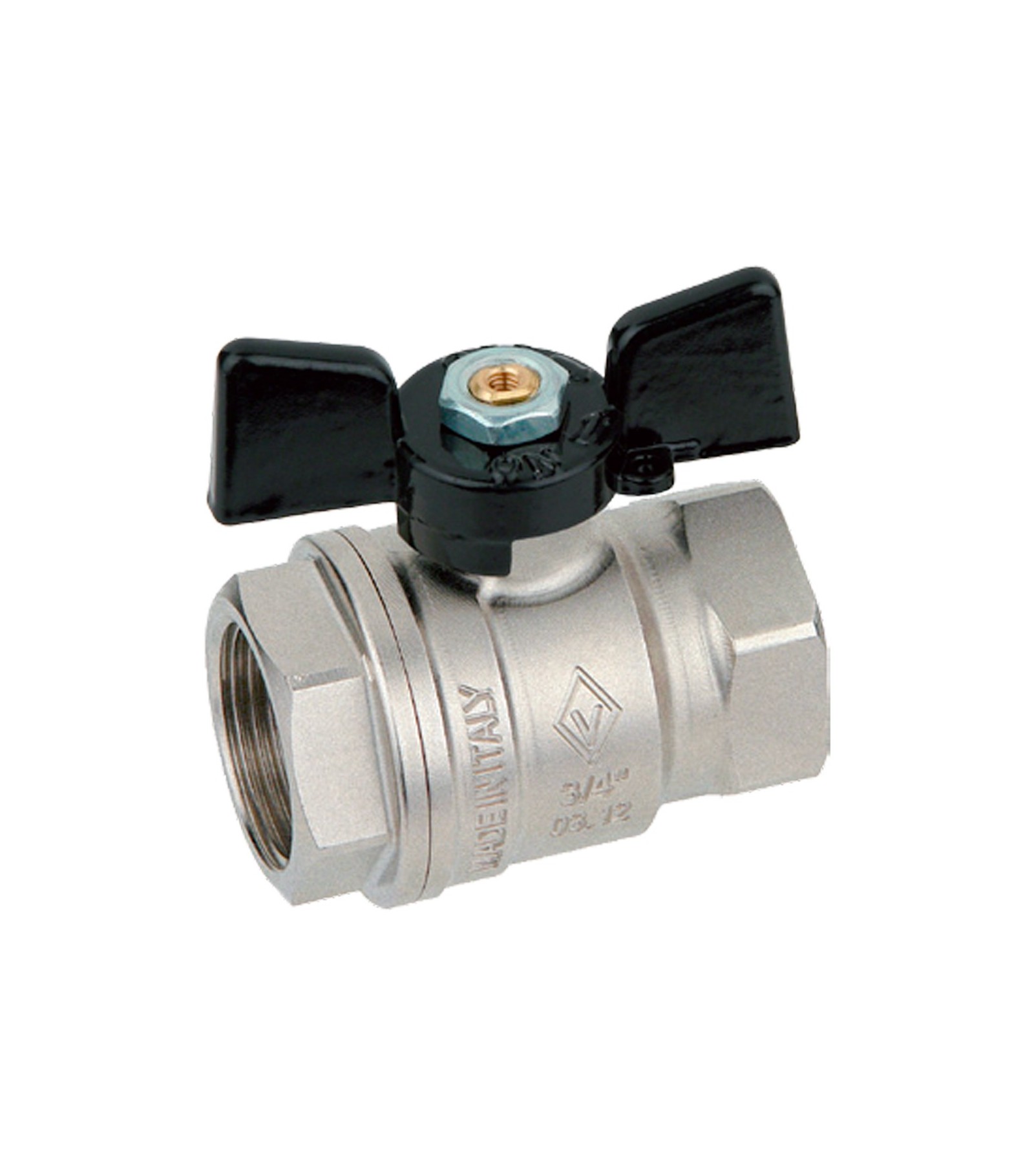 VALVOLA A SFERA PASSAGGIO TOTALE F/F FARFALLA ALLUMINIO BUGATTI 3/4 DN20 - PN30
