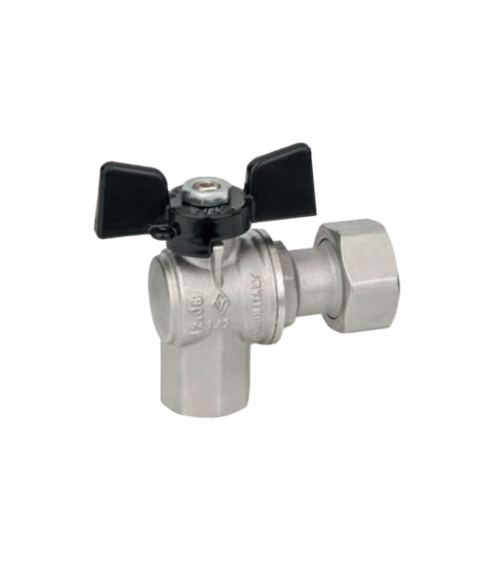 VALVOLA A SQUADRO F/F CON DADO GIREVOLE E FARFALLA IN ALLUMINIO BUGATTI 1/2x3/4 DN15