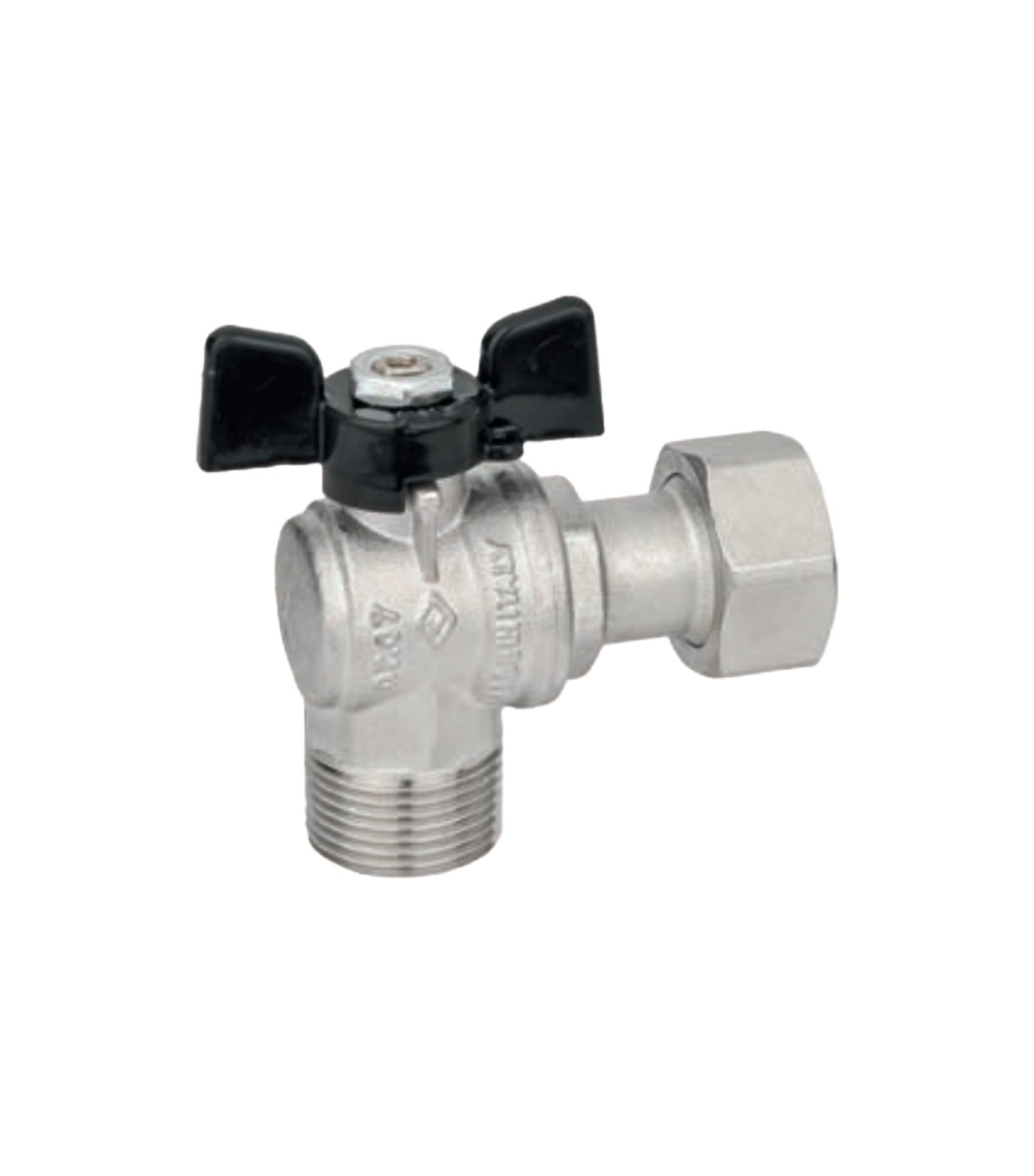 VALVOLA A SQUADRO M/F CON DADO GIREVOLE E FARFALLA IN ALLUMINIO BUGATTI 3/4x3/4 DN15Serie California. Passaggio TotaleRif: 5590004