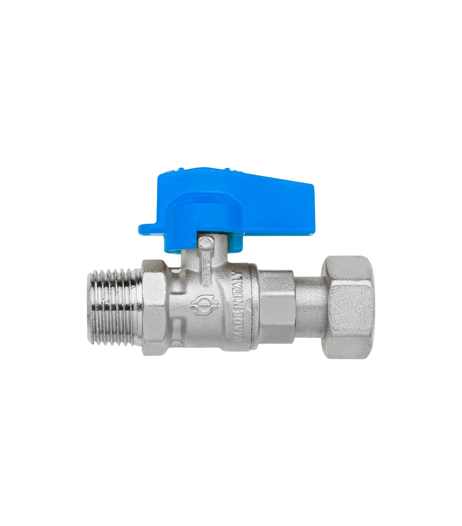RUBINETTO A SFERA DIRITTO PASSAGGIO TOTALE MASCHIO-DADO GIREVOLE FIV 1/2M x 1/2GSerie: GP2140. Con levetta in alluminio blu. Filettature corpo: Rp (UNI EN 10226-1). Filettature dado girevole: G (UNI EN ISO 228-1)Rif: 8125R076