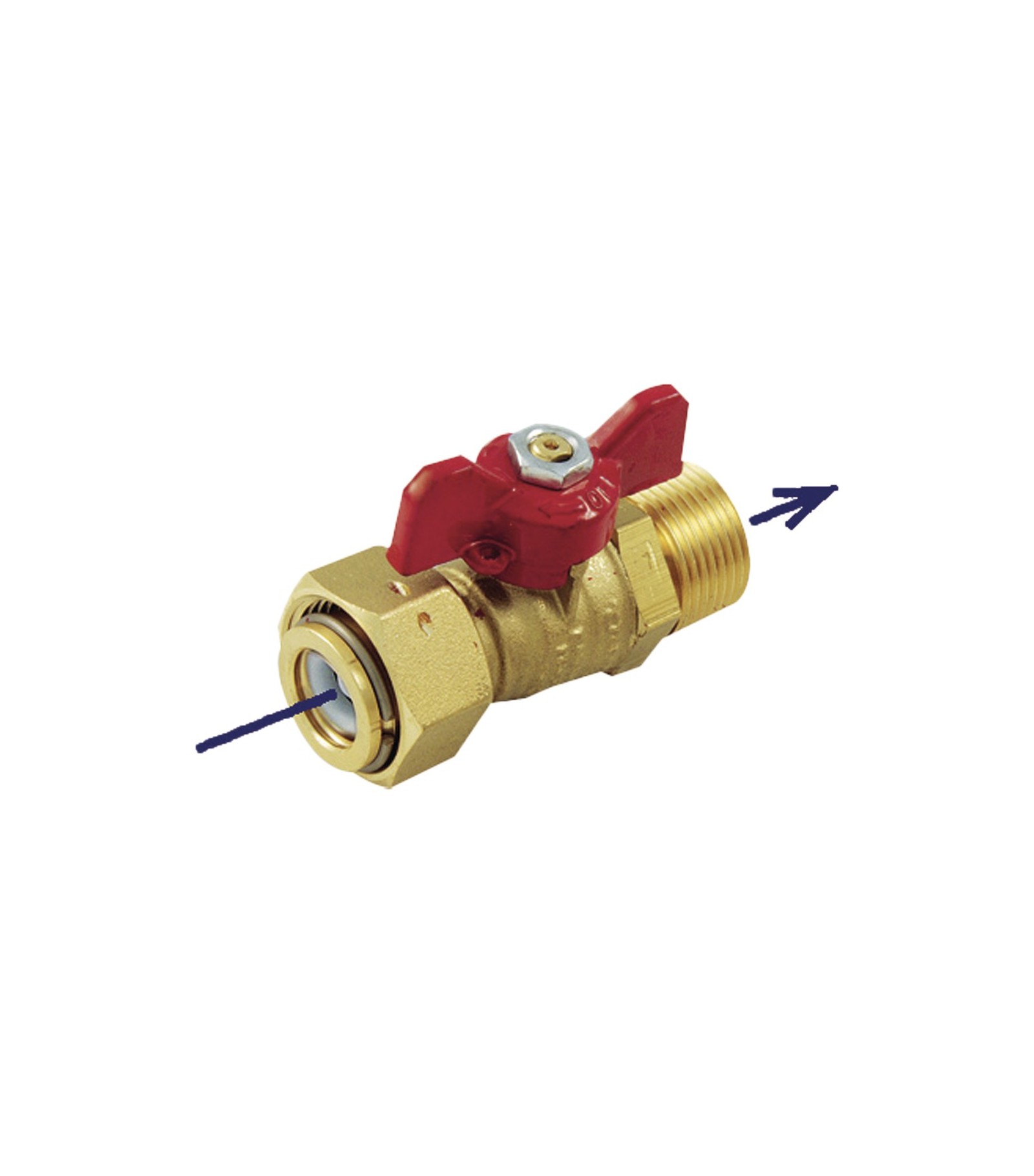 VALVOLA A SFERA DIRITTA MASCHIO CON GIRELLO E NON RITORNO 3/4 M x 3/4 FValvole a sfera per contatori estremità maschio ISO228 e dado folle con leva farfalla rossa. Fornita con valvola di non-ritornoRif: 2260011