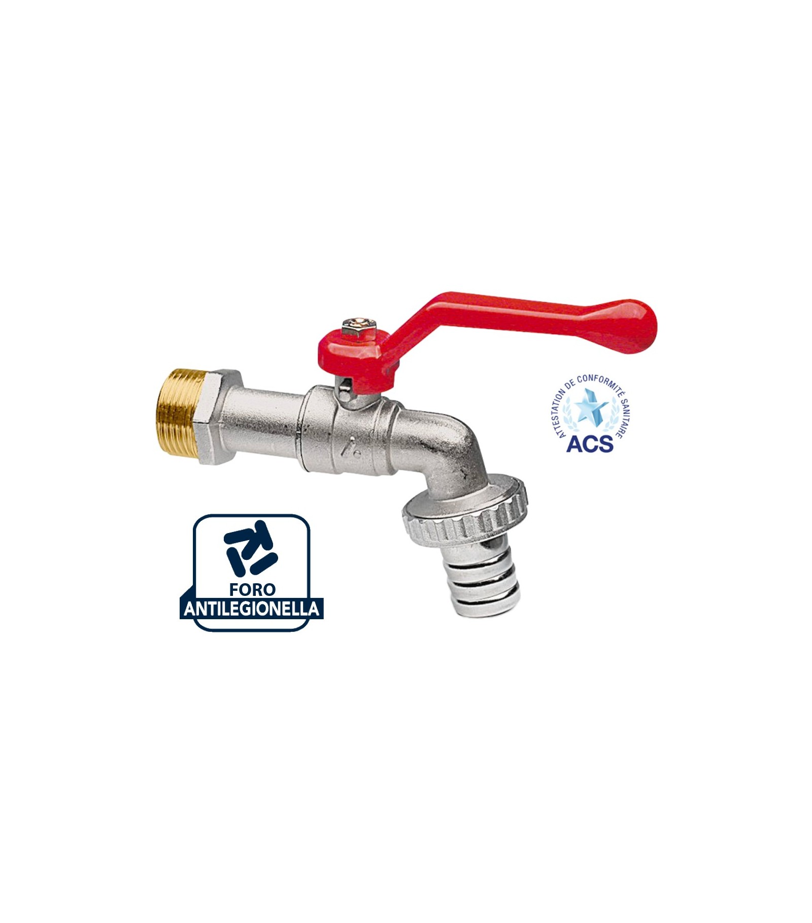 RUBINETTO PORTAGOMMA A SFERA CON LEVA IN ALLUMINIO APM 1/2 x 3/4Rubinetto a sfera serie STAR con portagomma. Leva alluminio rossa. PN 25Rif: 2060LP015