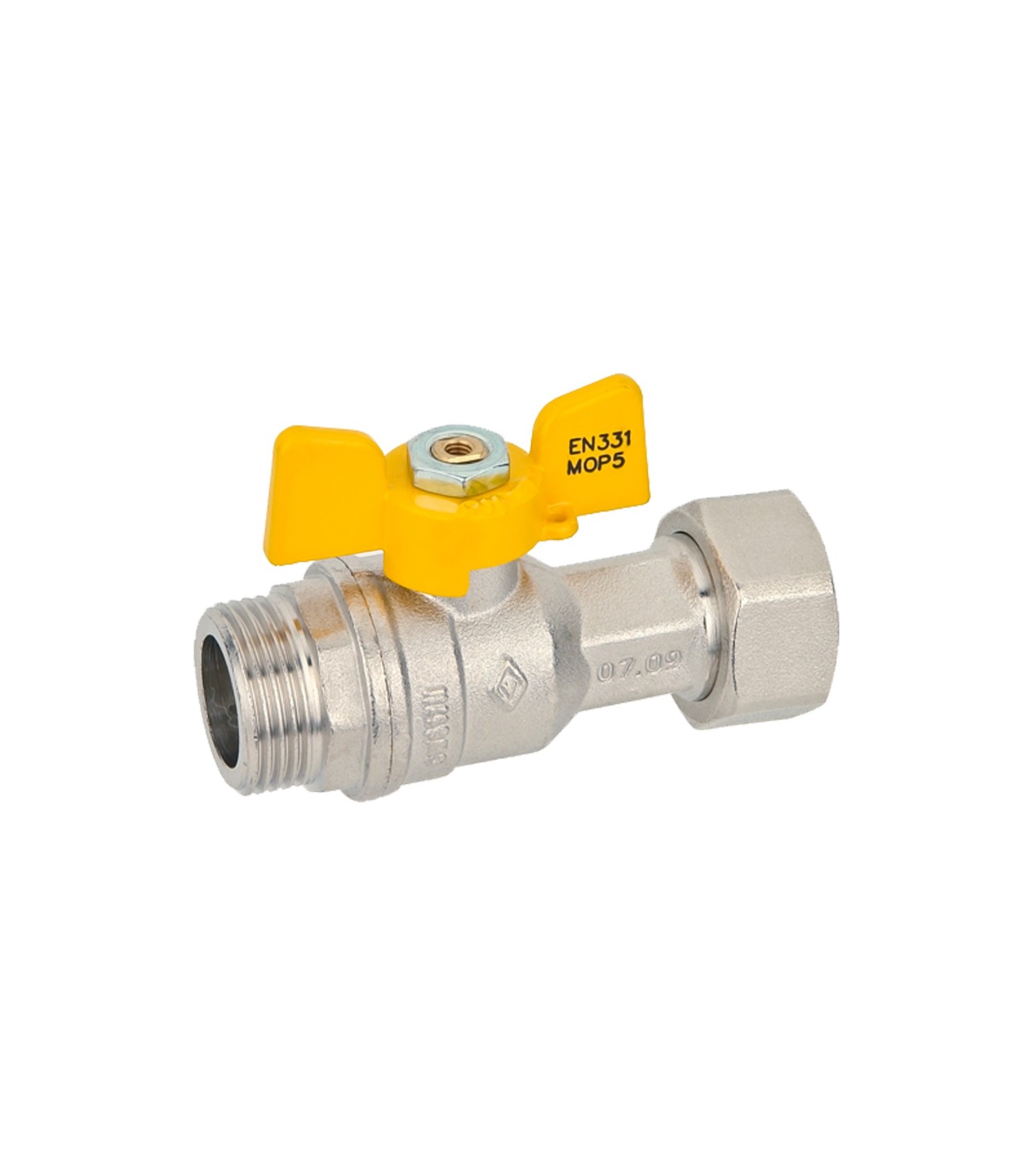 VALVOLA A SFERA GAS M/F CON DADO GIREVOLE E FARFALLA IN ALLUMINIO BUGATTI 1/2M x 3/4G