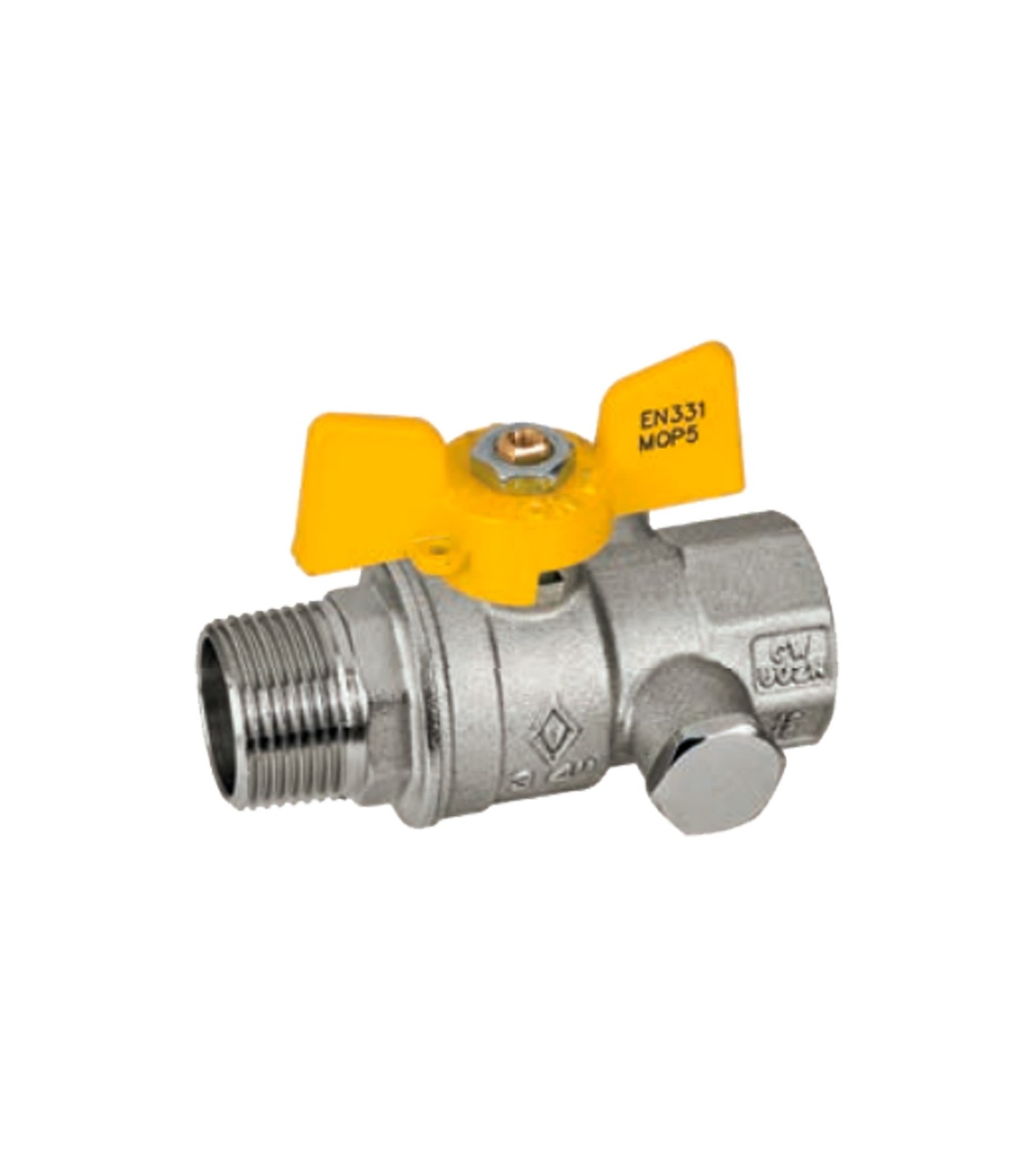 VALVOLA A SFERA GAS M/F CON PRESA DI PRESSIONE E FARFALLA IN ALLUMINIO BUGATTI 3/4M x 1/4F - DN20