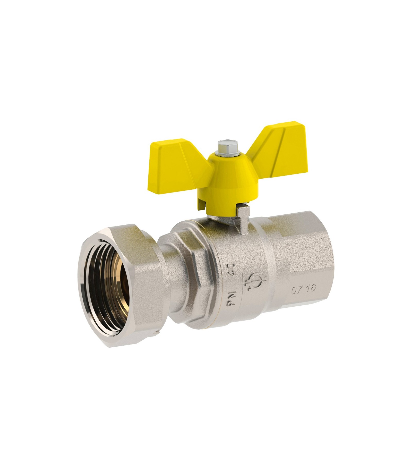 VALVOLA A SFERA GAS F/F CON DADO GIREVOLE E FARFALLA IN ALLUMINIO FIV 3/4F x 1G - DN20