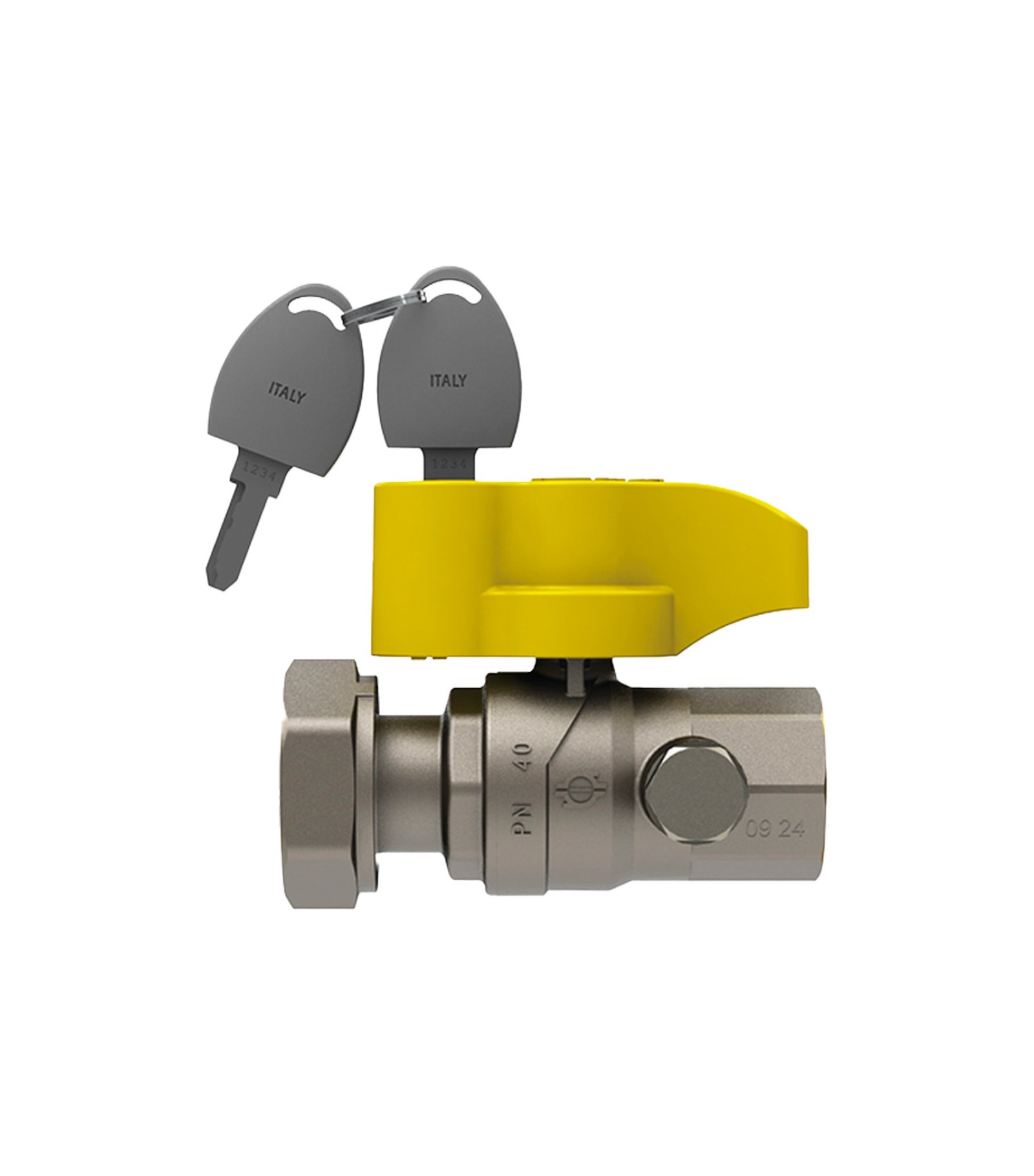 VALVOLA A SFERA GAS DIRITTA POST-CONTATORE F/F CON DADO GIR. E SICUREZZA FIV 1Fx11/4G - DN25
