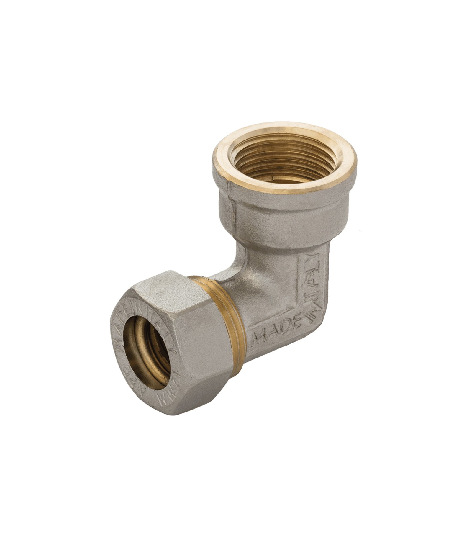 GOMITO FEMMINA A COMPRESSIONE O-RING PER TUBO RAME APE D.16 x 1/2