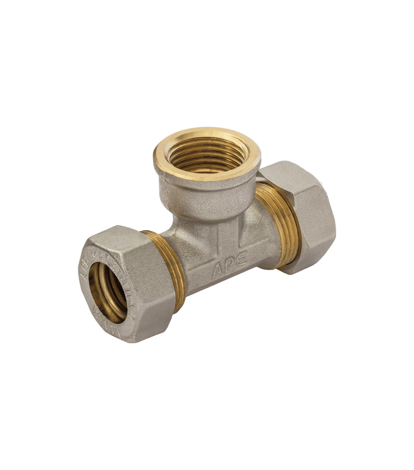 TEE FEMMINA A COMPRESSIONE O-RING PER TUBO RAME APE D.22 x 3/4 x D.22