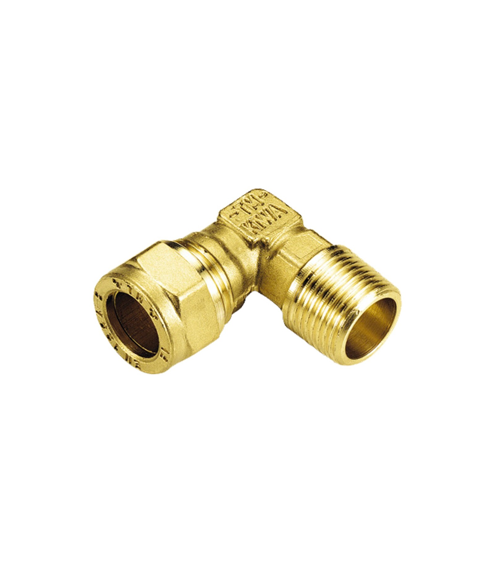 RACCORDO CURVO MASCHIO A COMPRESSIONE CON OGIVA IN OTTONE PER TUBO RAME TIEMME D.22 x 1